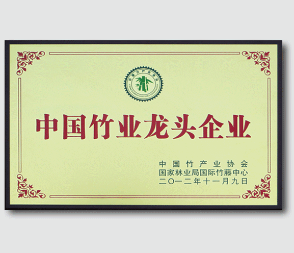 由中國竹業(yè)龍頭企業(yè)、國家林業(yè)局國際竹藤竹制、中國竹業(yè)產(chǎn)業(yè)協(xié)會于二零一二年十一月九日,頒發(fā)。